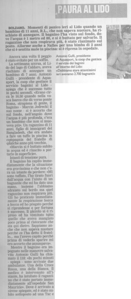 cronaca Bolzano: "al lido 15enne rischiava di affogare".
